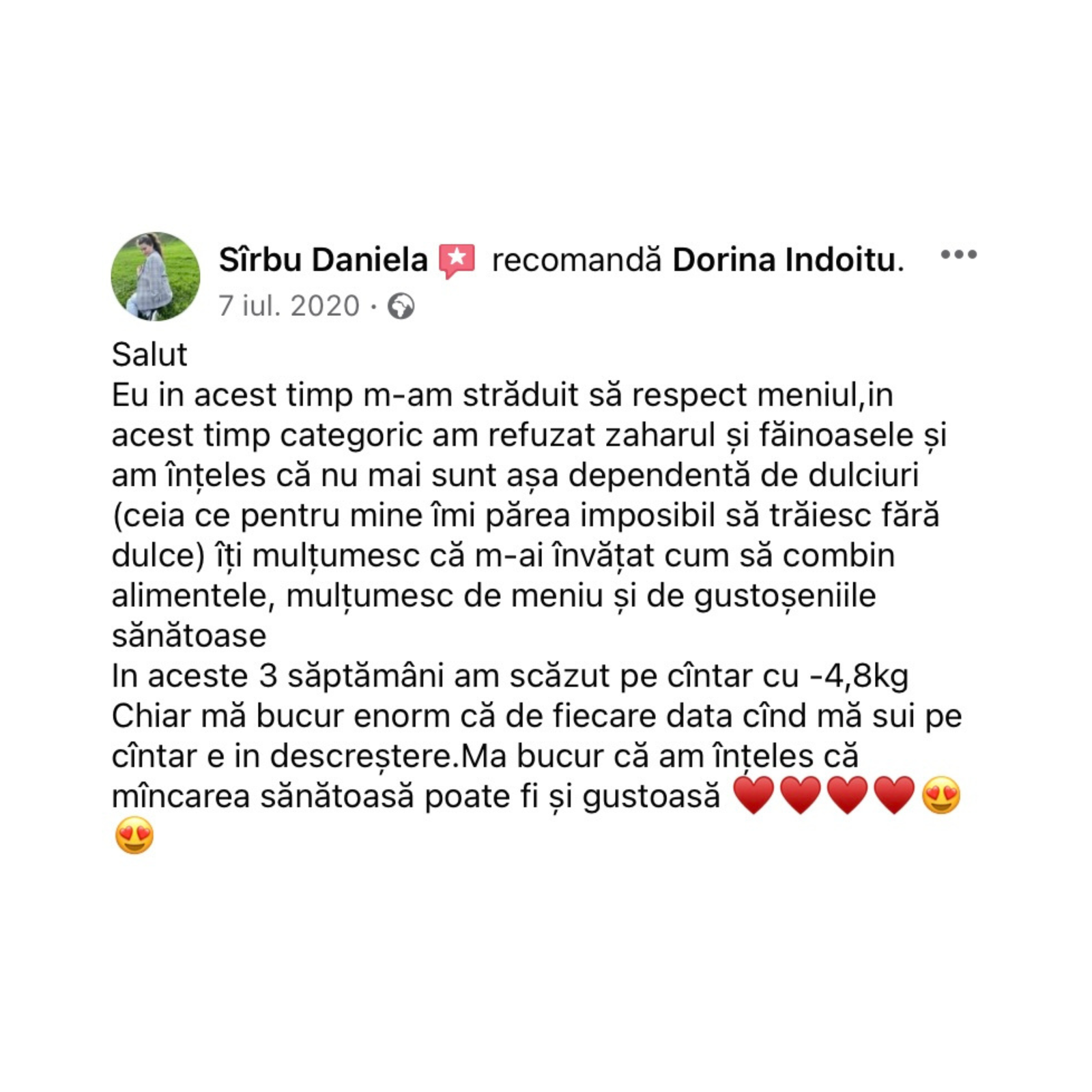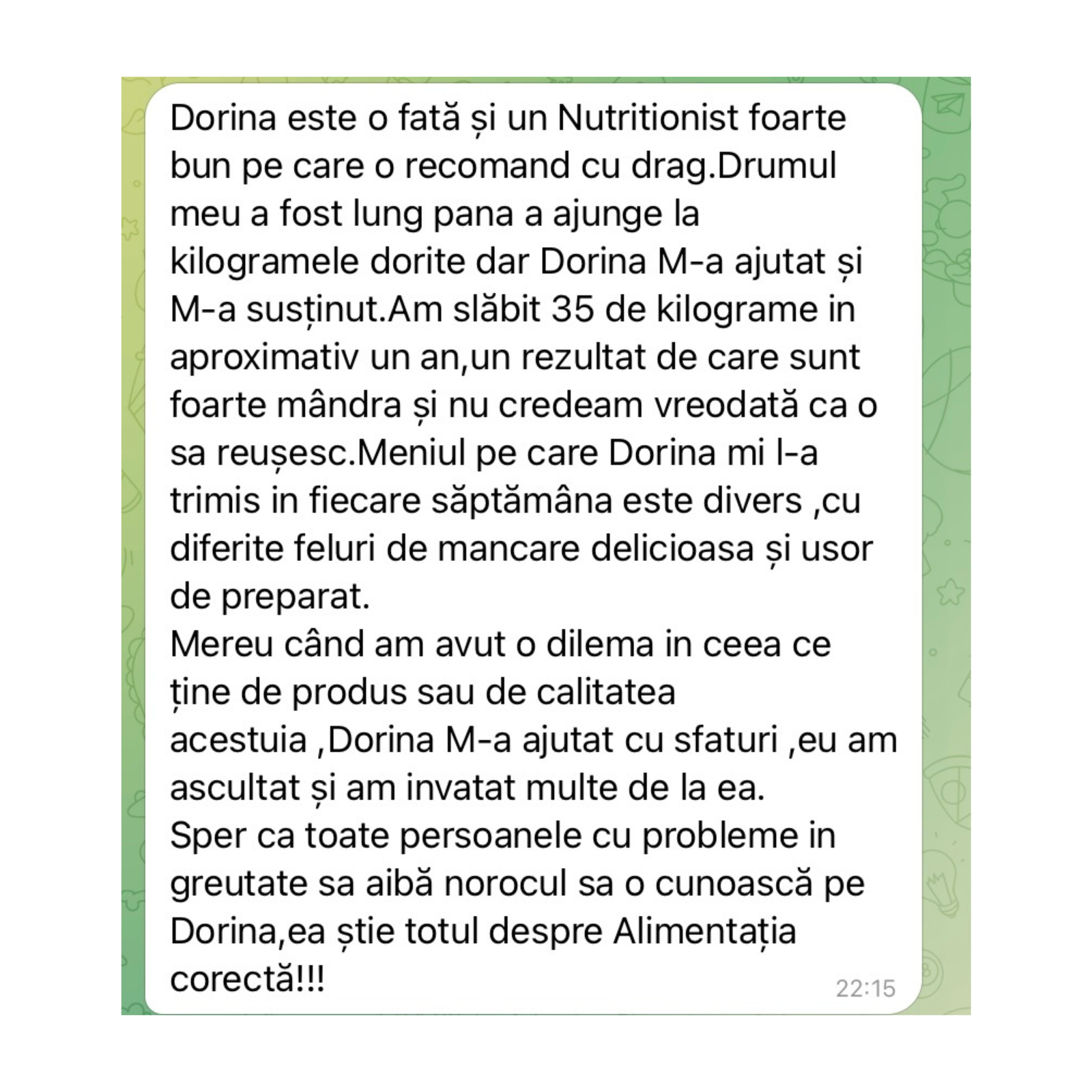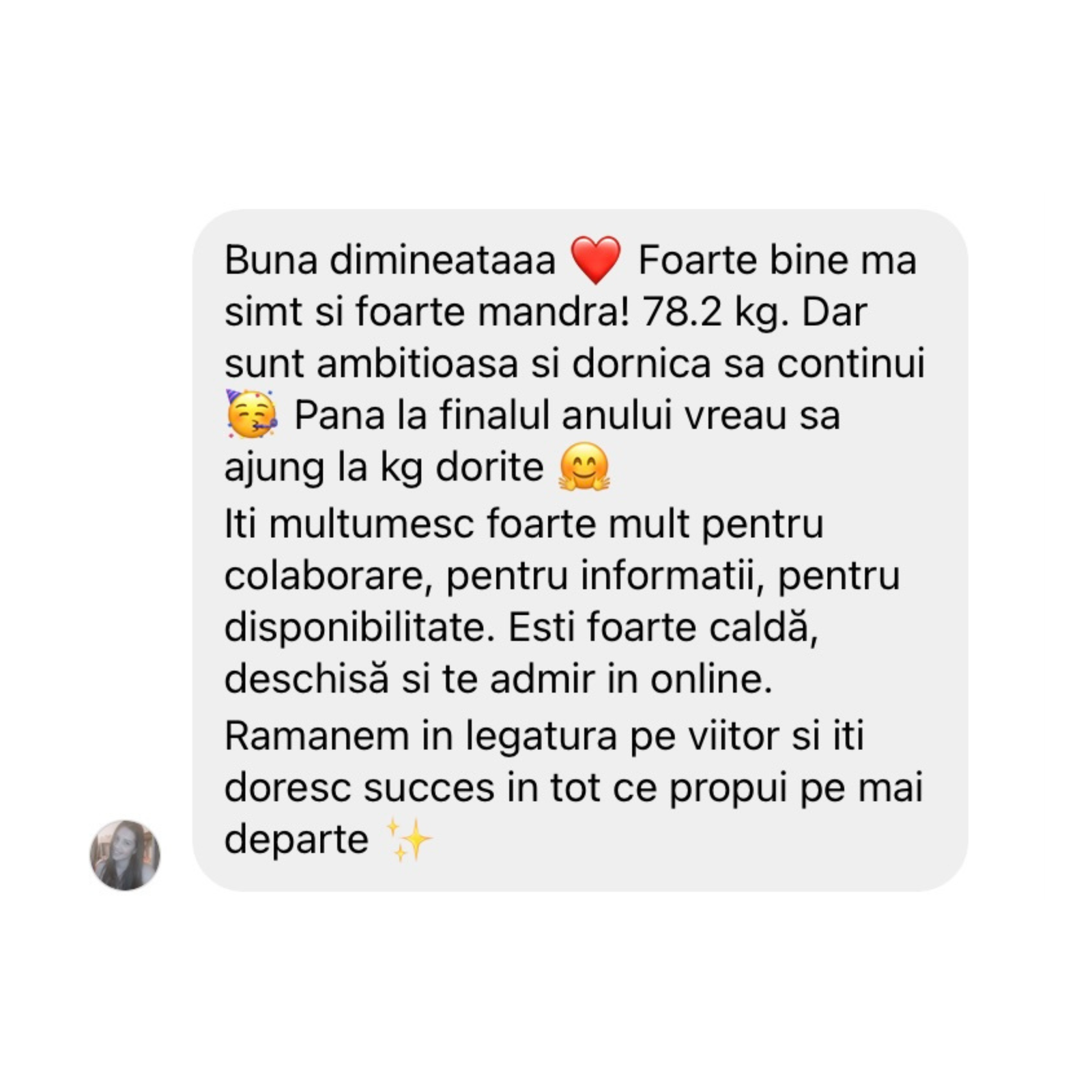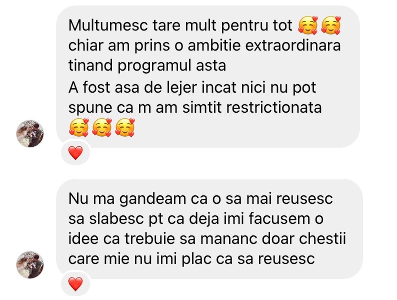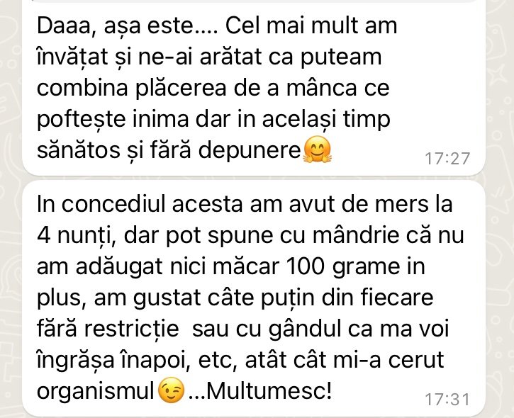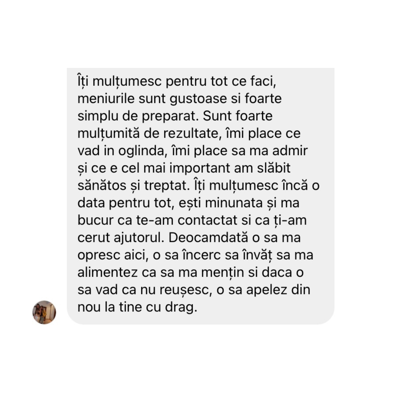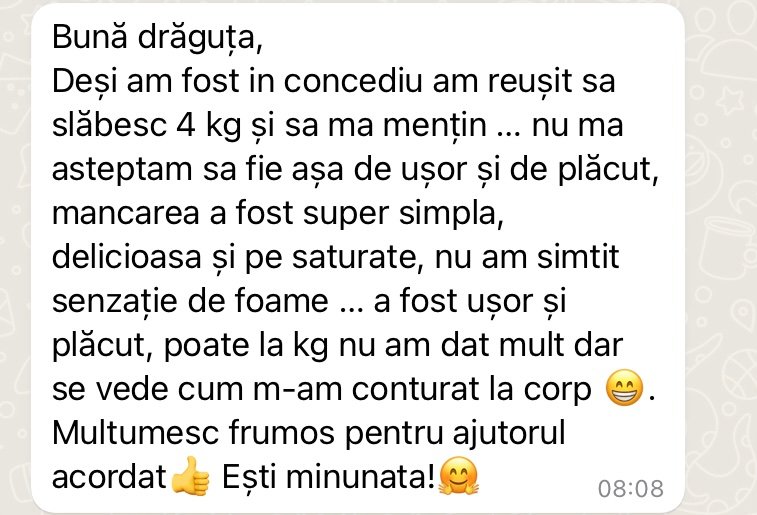 Vreau să-ți arăt că se poate slăbi mâncând gustos, fără să simți că ești la dietă, și să te ajut să-ți formezi obiceiuri care vor rămâne cu tine pentru totdeauna. De aceea, dacă îți dorești cu adevărat o schimbare și vrei mai mult decât o dietă de moment, sunt aici să te ajut.